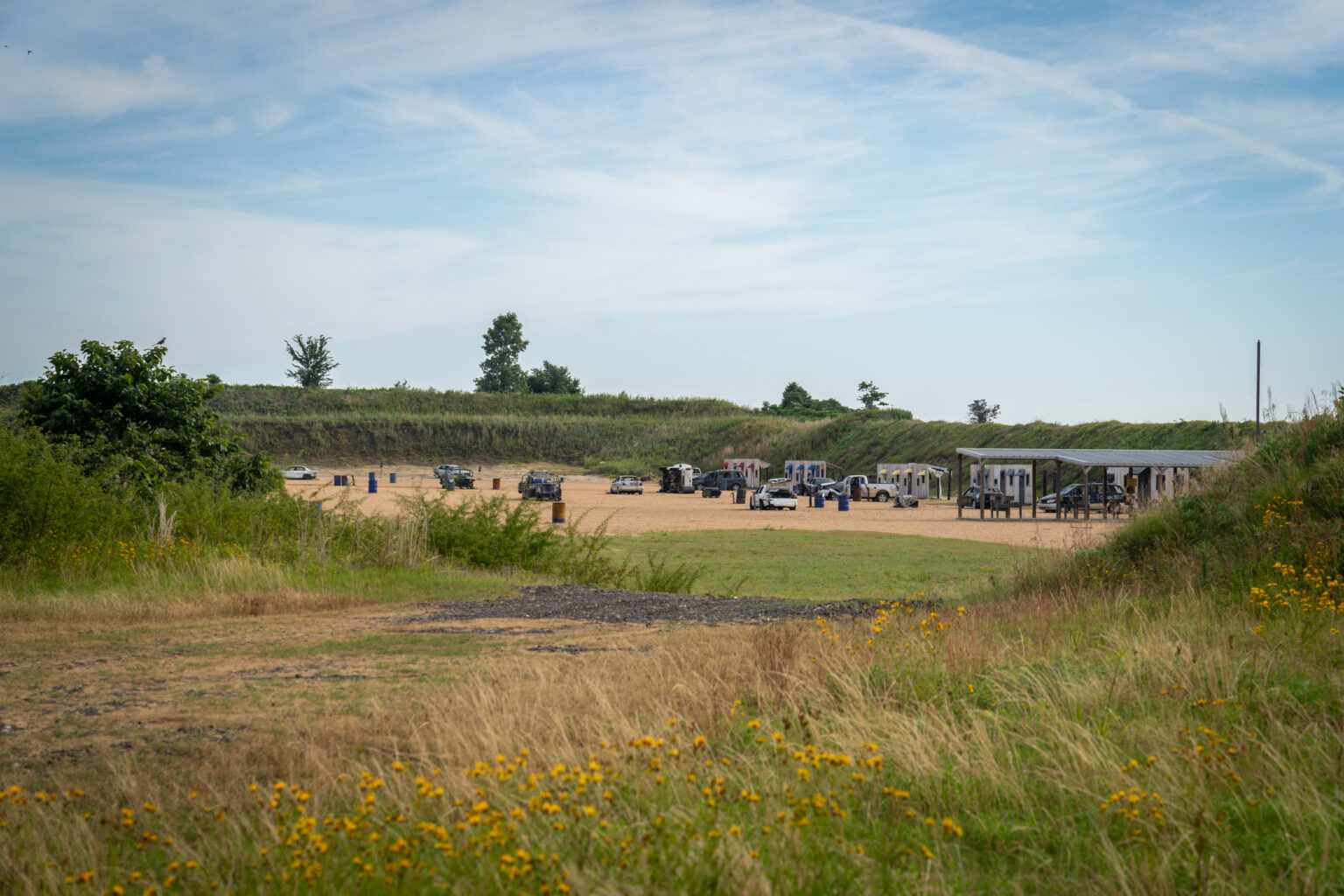 The 2.6-mile WPS-certified paved track is live-fire rated — a capability most tactical driving facilities don’t have. A 2,800-foot straightaway supports speeds over 100 mph and STOL aircraft operations. The integrated skid pad runs wet or dry with a built-in sprinkler system. A 270-degree live-fire counter-ambush area, elevated berms at choke points, and Ambush Alley support IAD and counter-ambush training with live rounds.