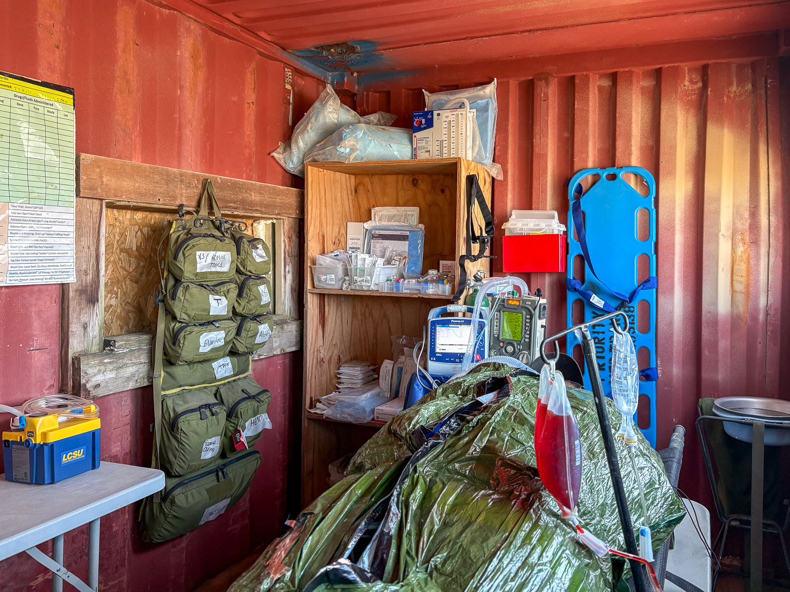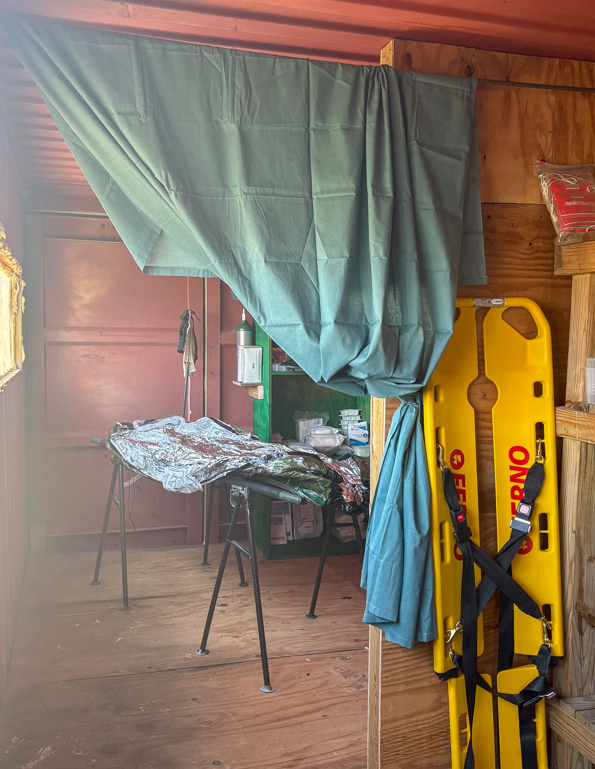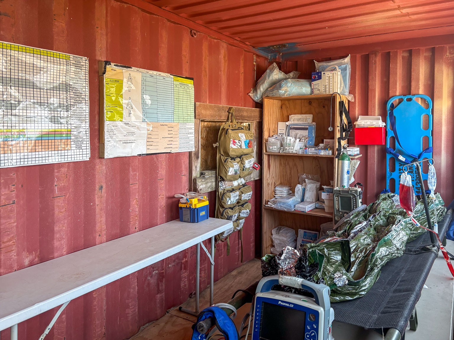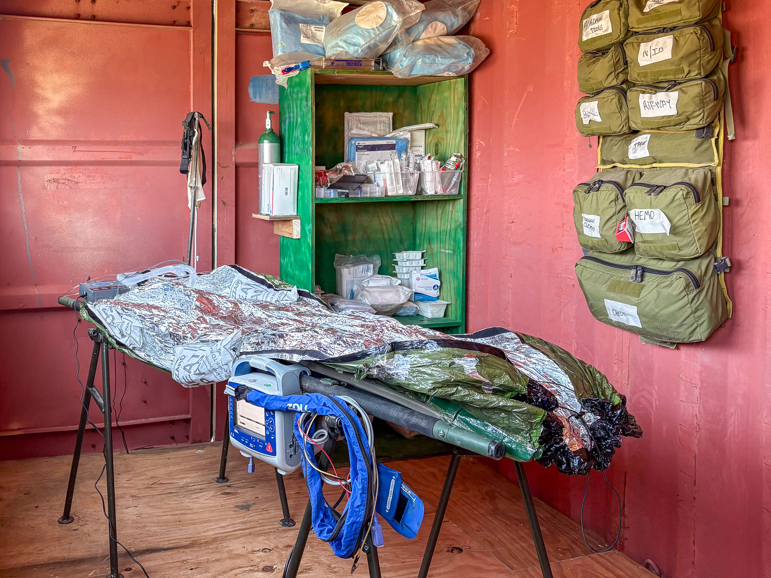 Gold band: Purpose-built compound for prolonged field care — degraded infrastructure, switchable power, and the clinical problem-solving that keeps casualties alive when evacuation is hours away.