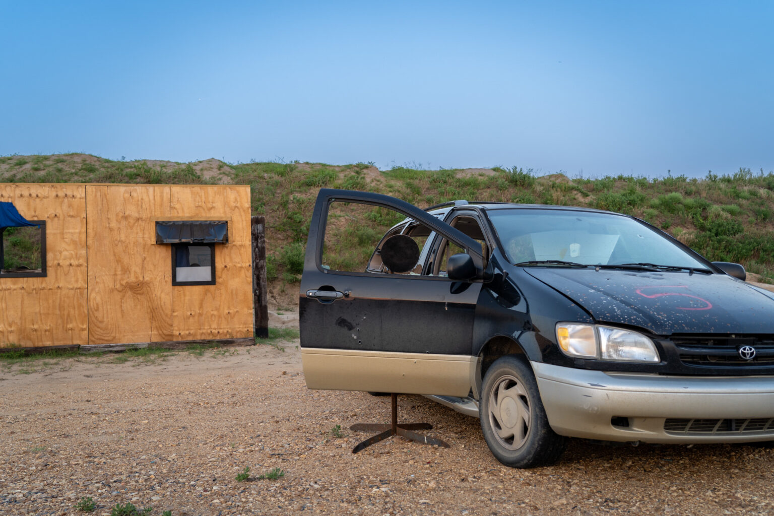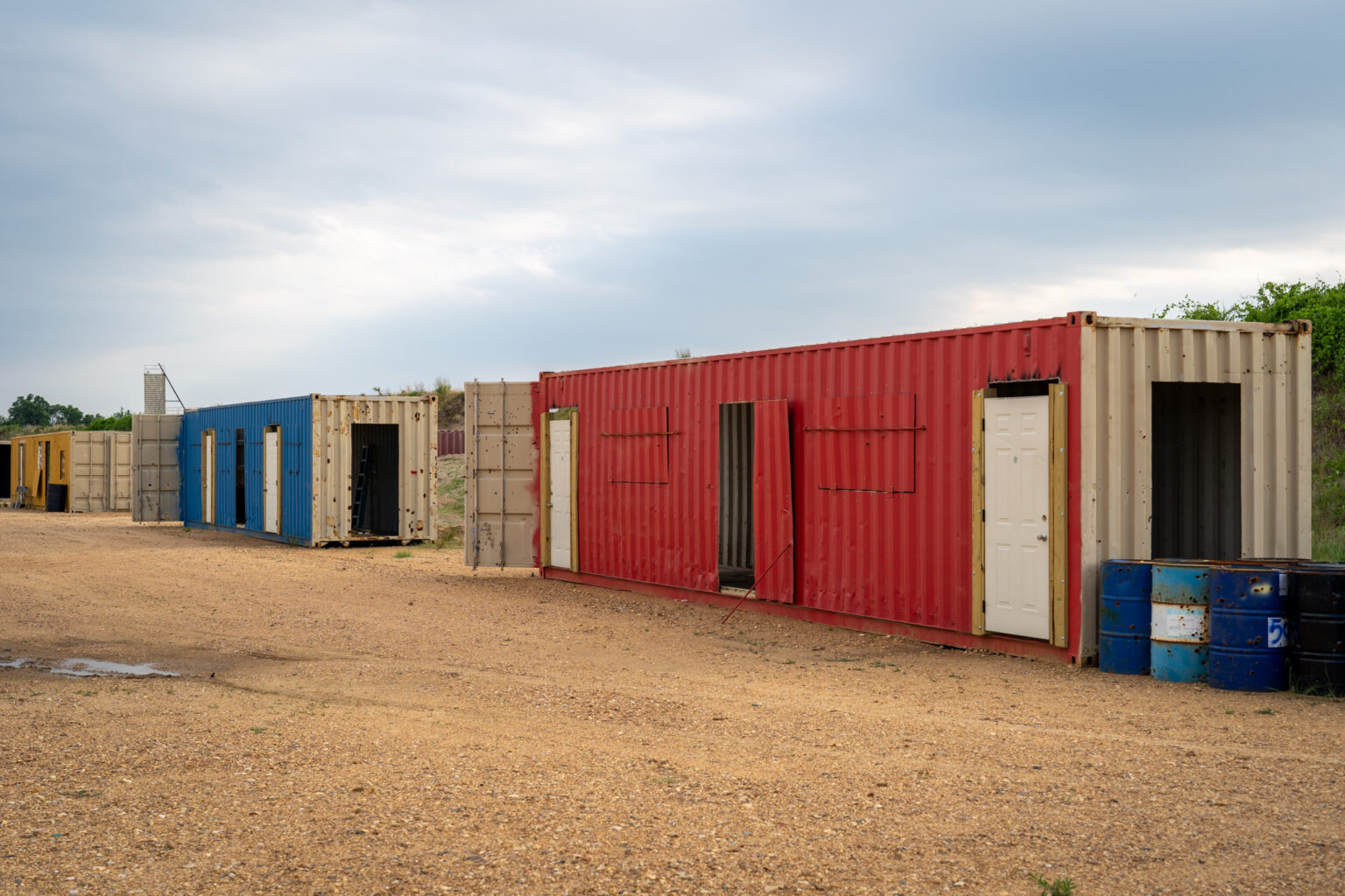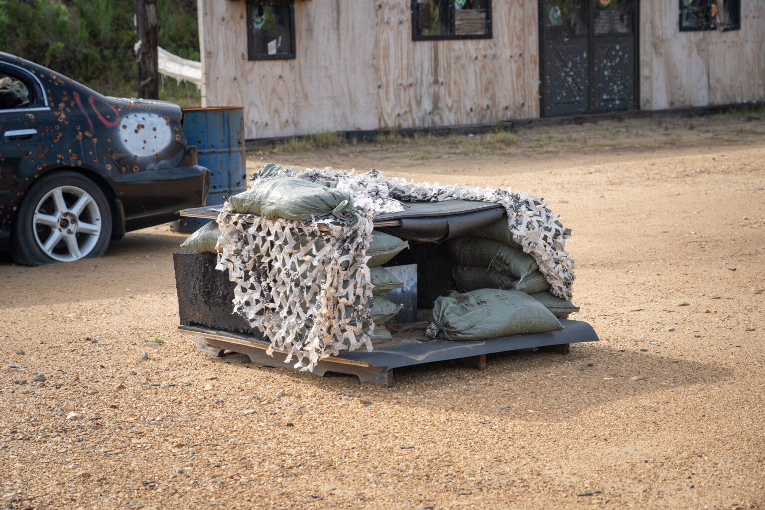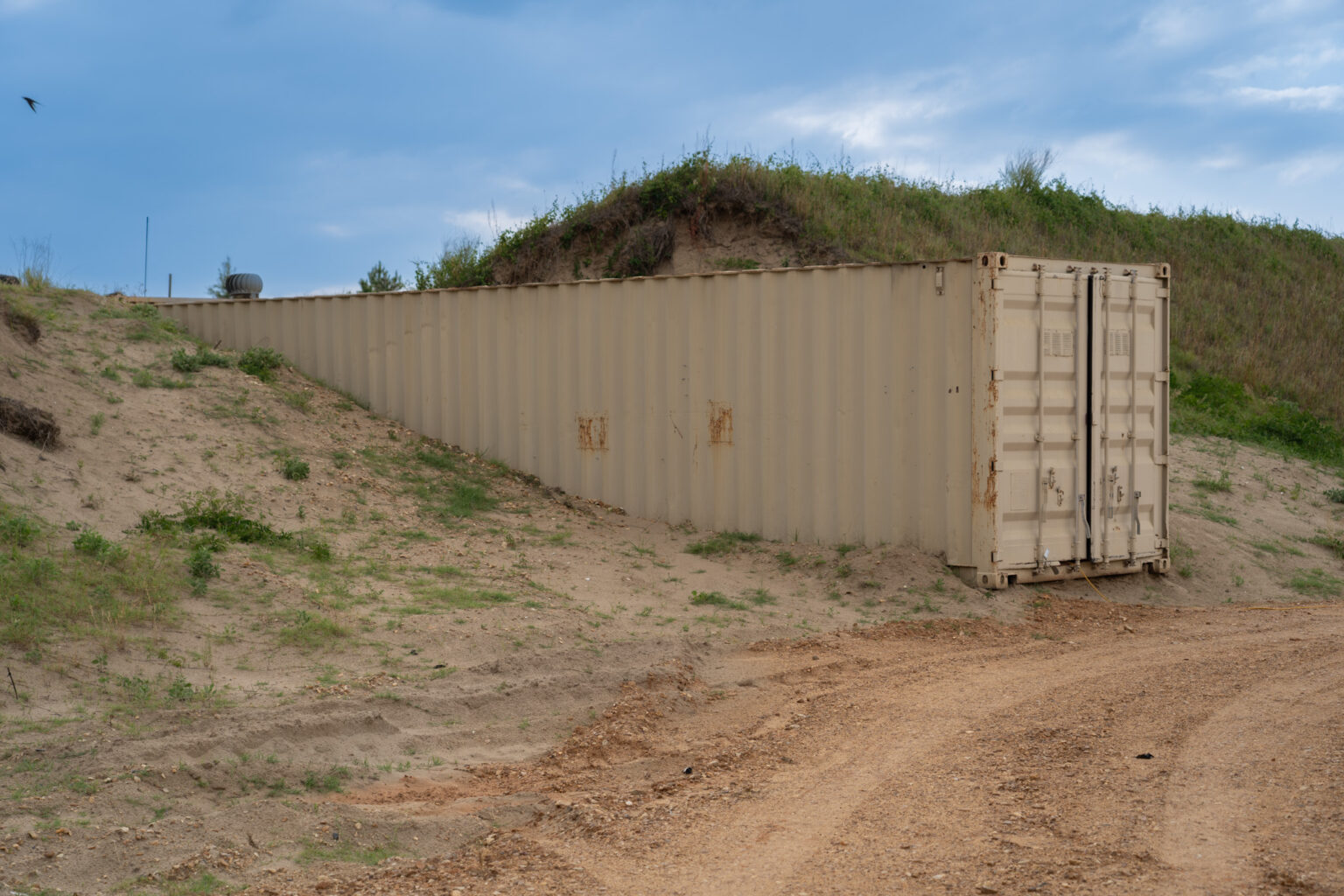 Range 4 — Hogan’s Alley — is a 210,000 sq ft, 300-yard, 270° multipurpose range that safely hosts up to 100 shooters simultaneously. Five lanes, each with a different target configuration and different door and window shooting positions. 40 pneumatic targets with eight per lane — static and steel arrays configurable to unit requirements. Every shooting station supports prone, kneeling, standing, and movement drills. Vehicle access points allow shooting from moving and static vehicles for mounted force protection and immediate action drills.