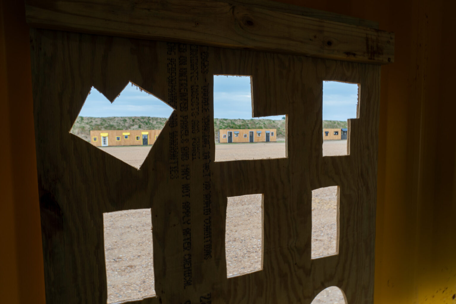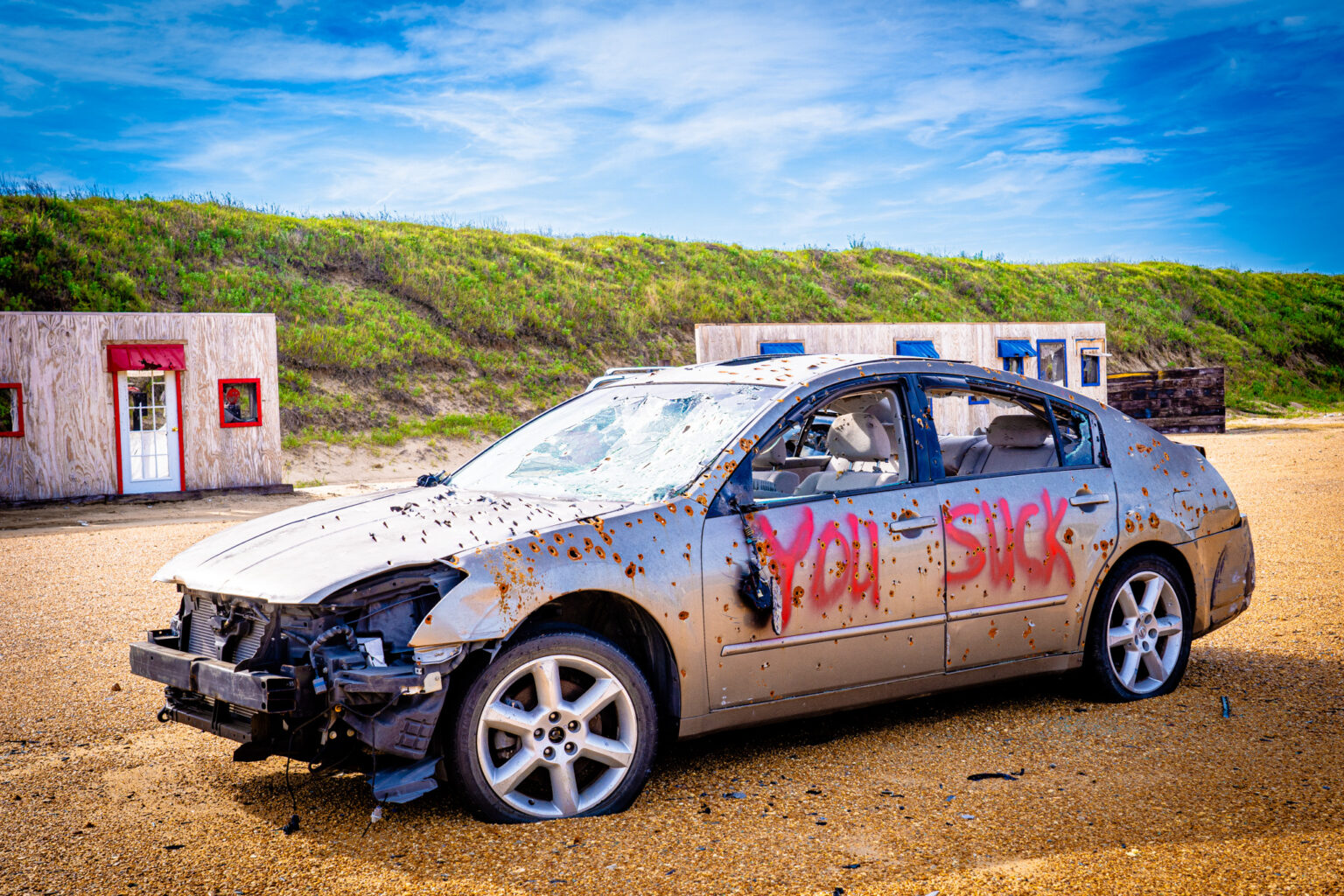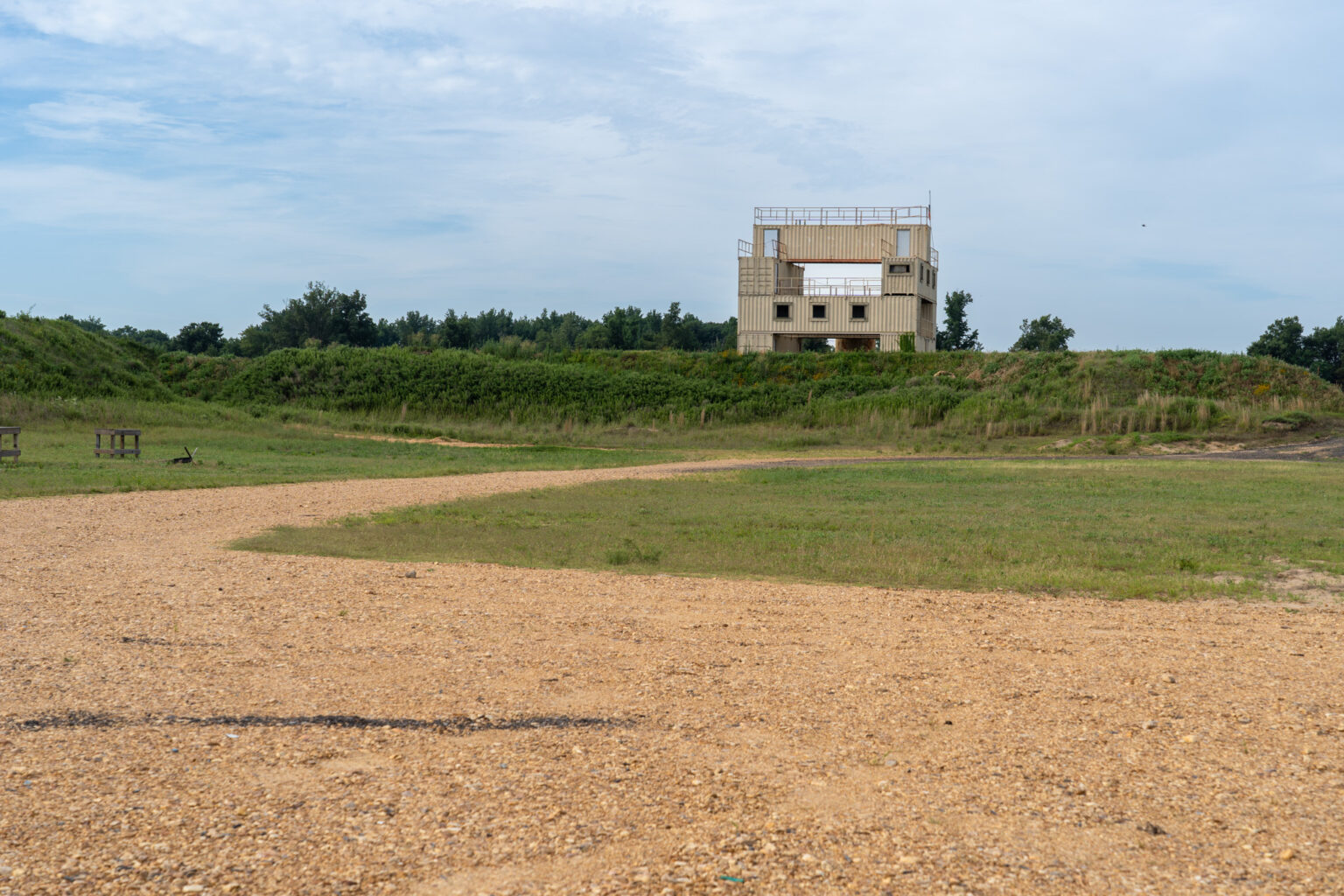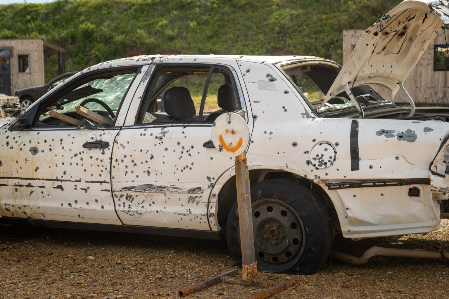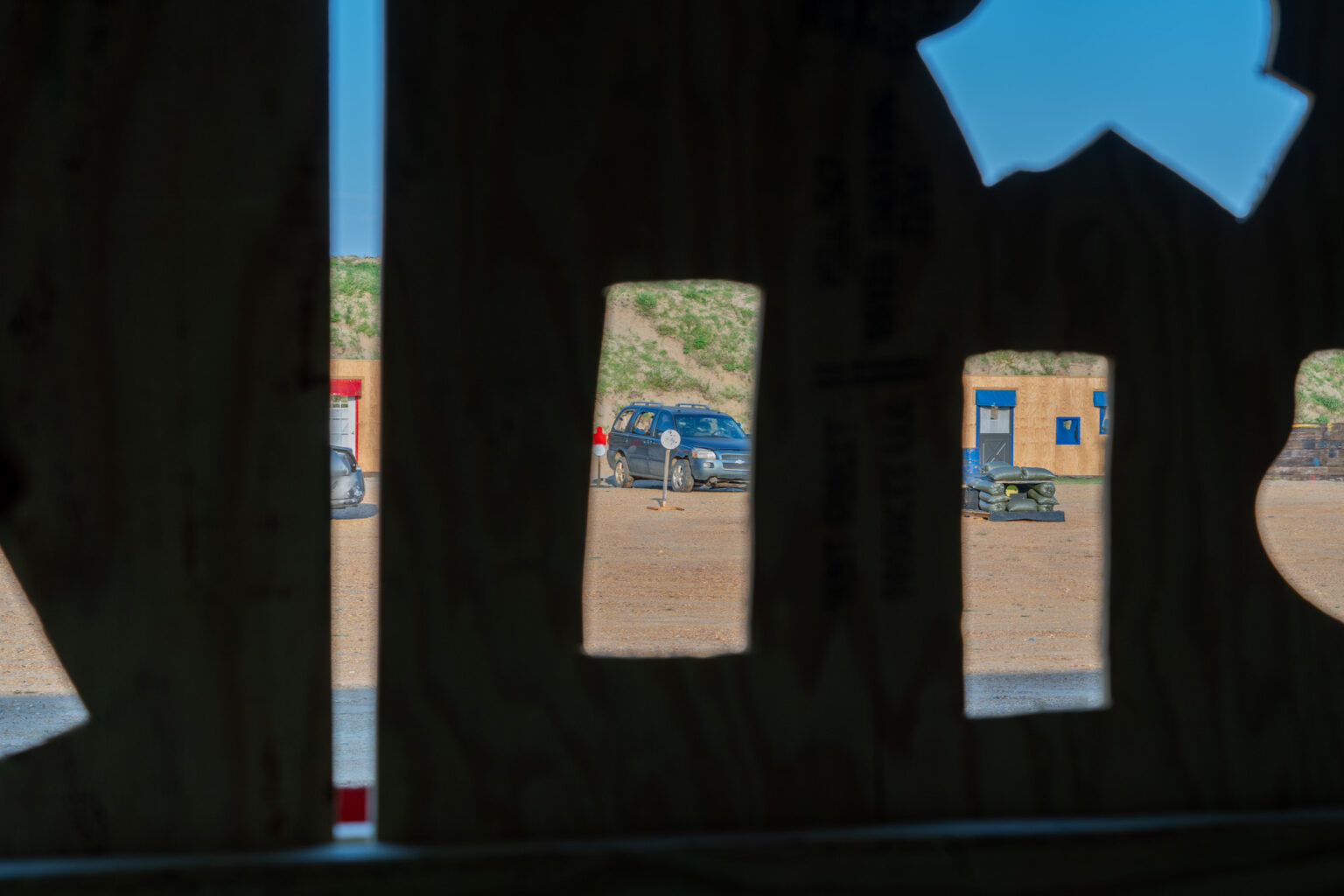 Range 4 — Hogan’s Alley — is a 210,000 sq ft, 300-yard, 270° multipurpose range that safely hosts up to 100 shooters simultaneously. Five lanes, each with a different target configuration and different door and window shooting positions. 40 pneumatic targets with eight per lane — static and steel arrays configurable to unit requirements. Every shooting station supports prone, kneeling, standing, and movement drills. Vehicle access points allow shooting from moving and static vehicles for mounted force protection and immediate action drills.